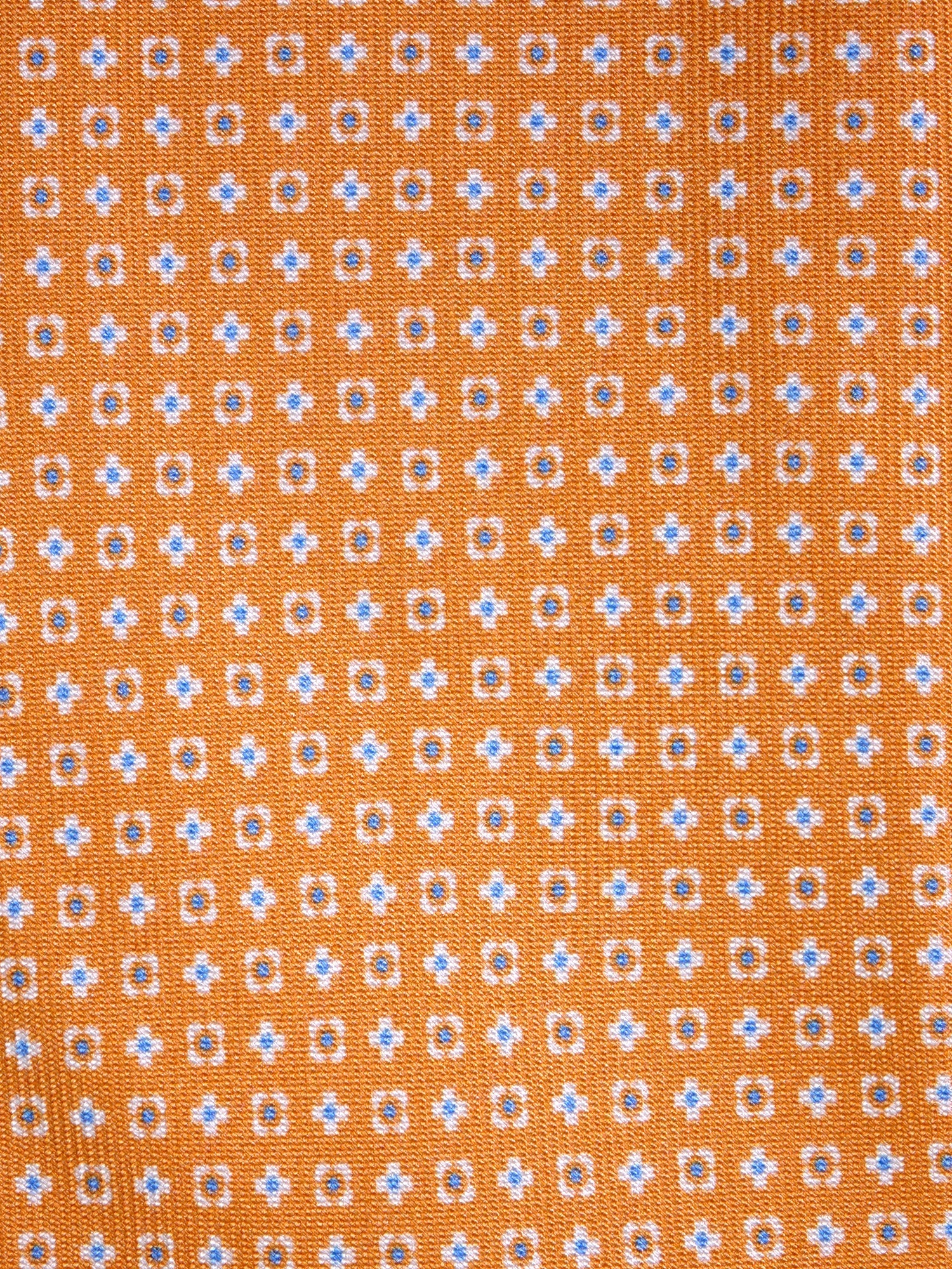 An investment in timeless elegance for the successful man. This Don Mimì tie, handcrafted in precious 100% printed silk, represents the excellence of classic sartorial tradition. The vibrant orange background, illuminated by a refined light blue and white micro pattern, brings prestige and class to the summer wardrobe. The fluidity of pure silk ensures a perfect knot and impeccable drape, an expression of "Old Money" status and uncompromising stylistic rigor.