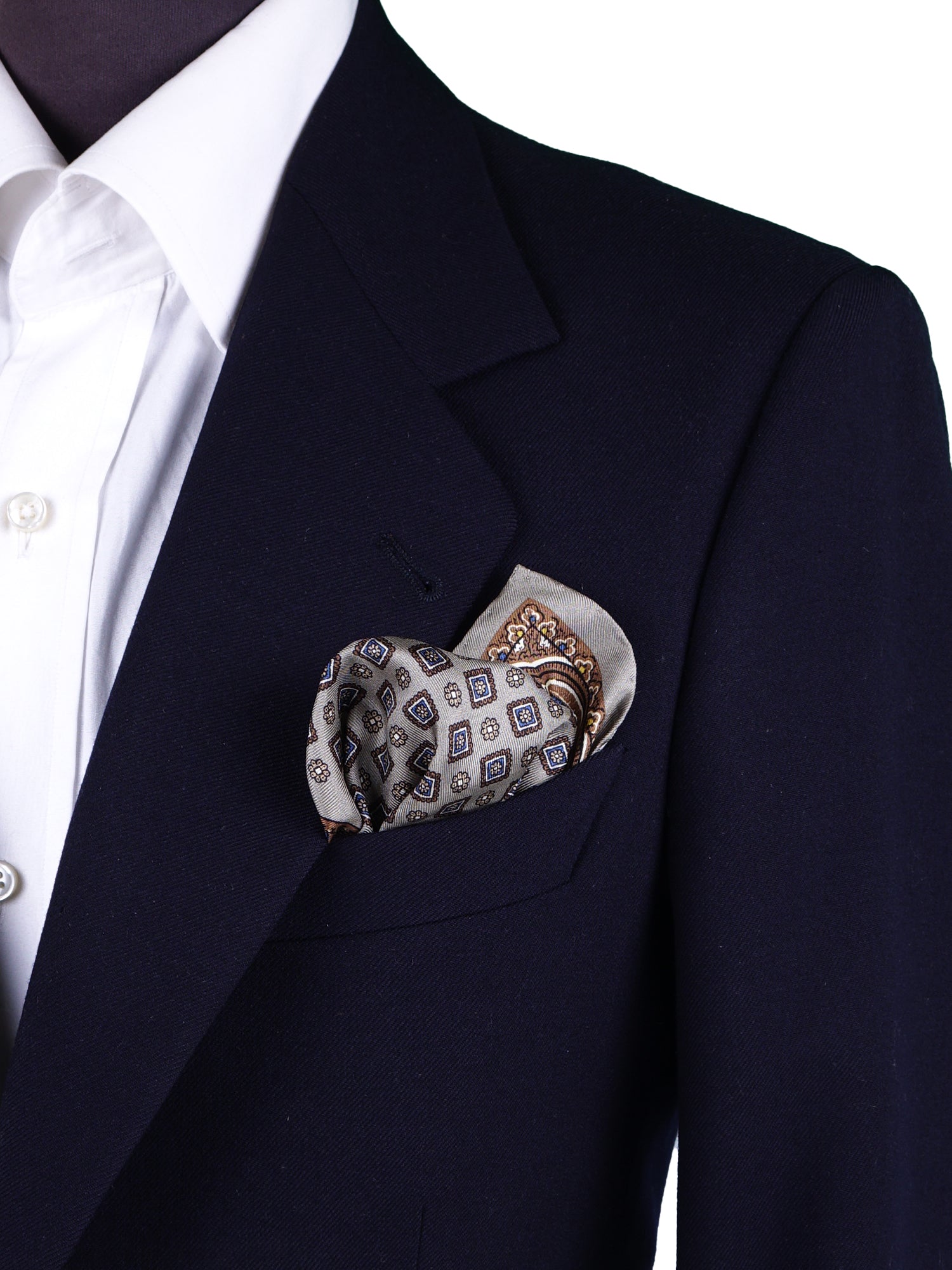 Formal Business Style: For a sober and professional look, use the outer part of the handkerchief.