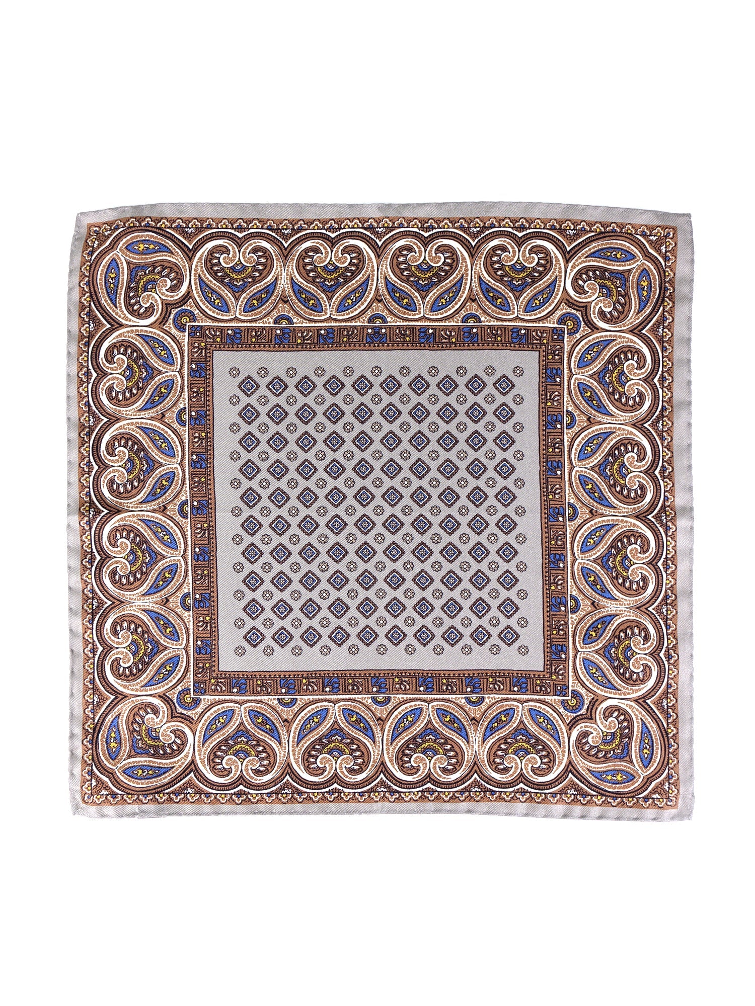 Beige Pocket Square in Pure Printed Silk GAVINO
