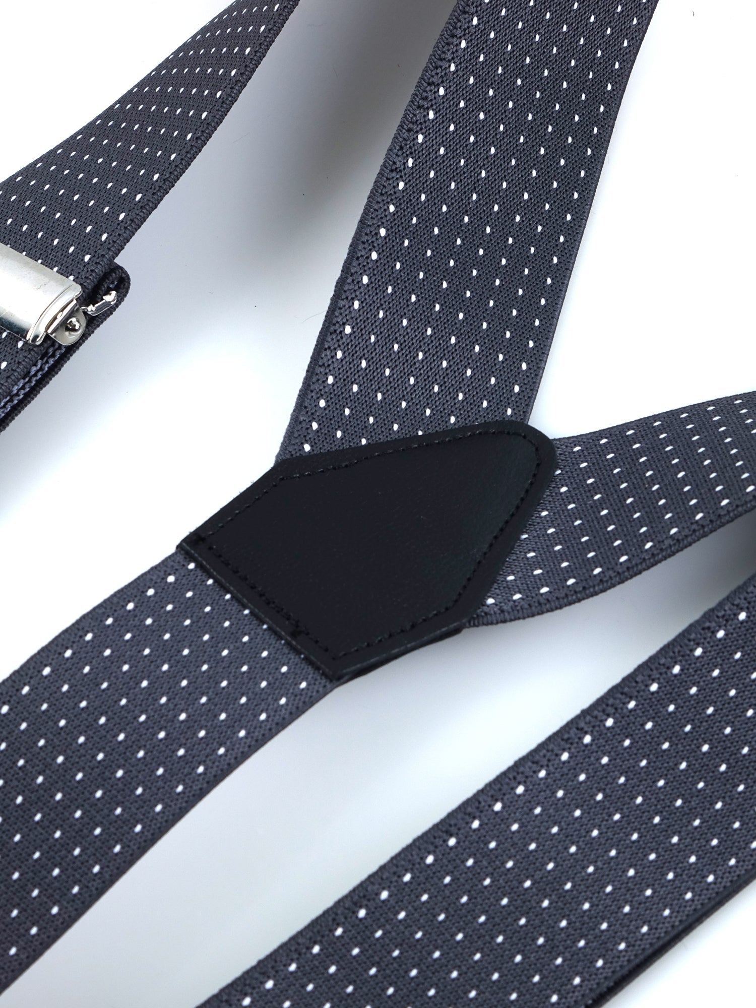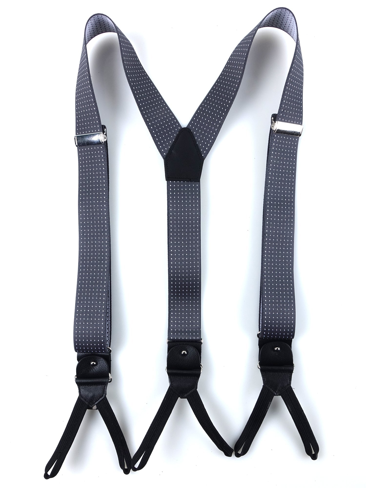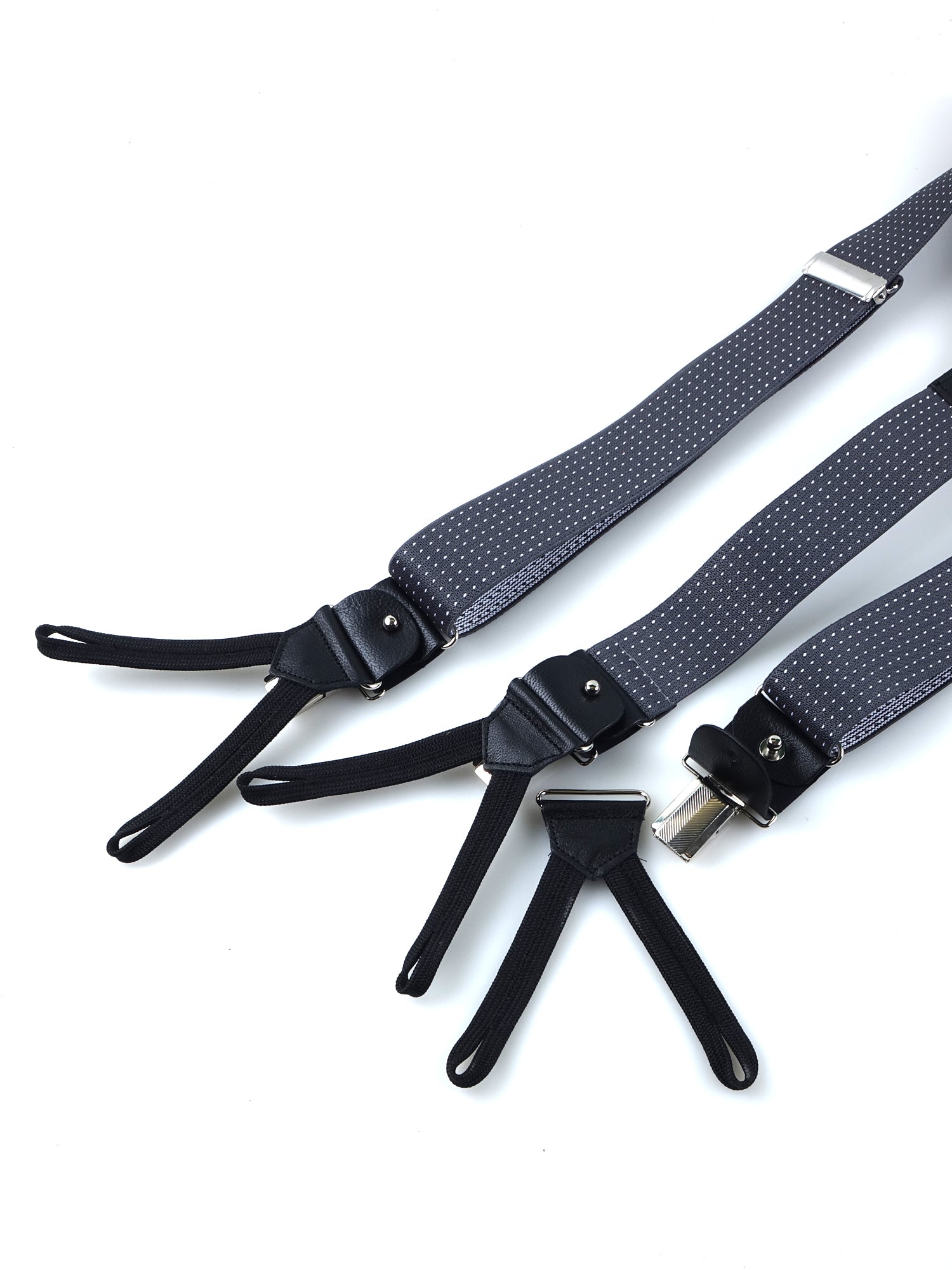 Y-shaped elastic polka dot suspenders with laces and clips ELASTIC Gray
