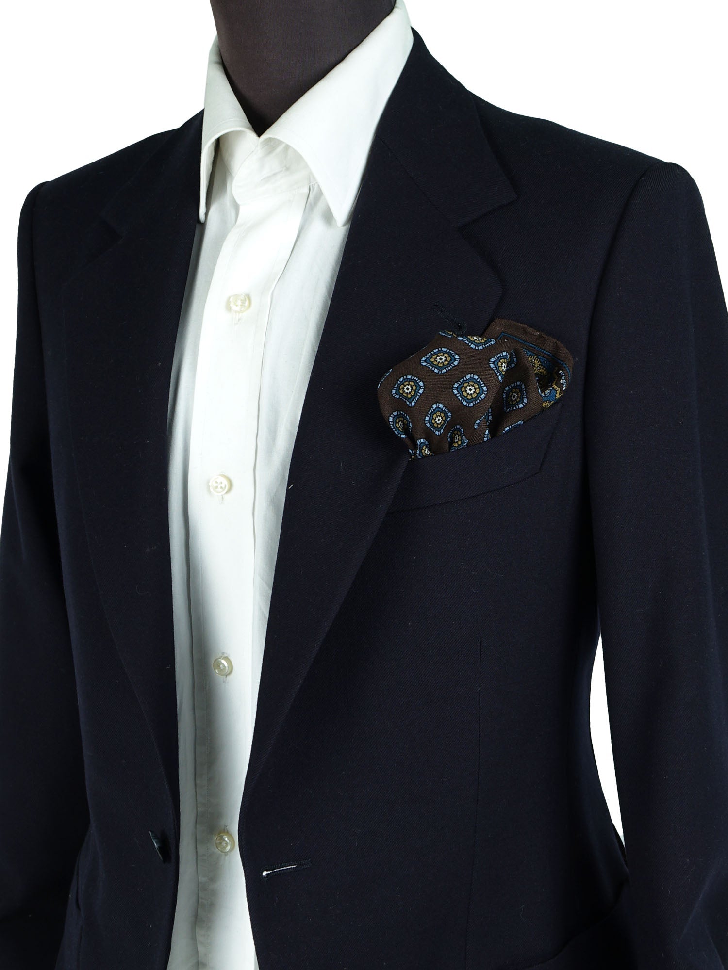 - How to Fold It: A puff fold is the most elegant choice. You can choose to predominantly show the brown center for a more sober look, or the border for a more autumnal result.