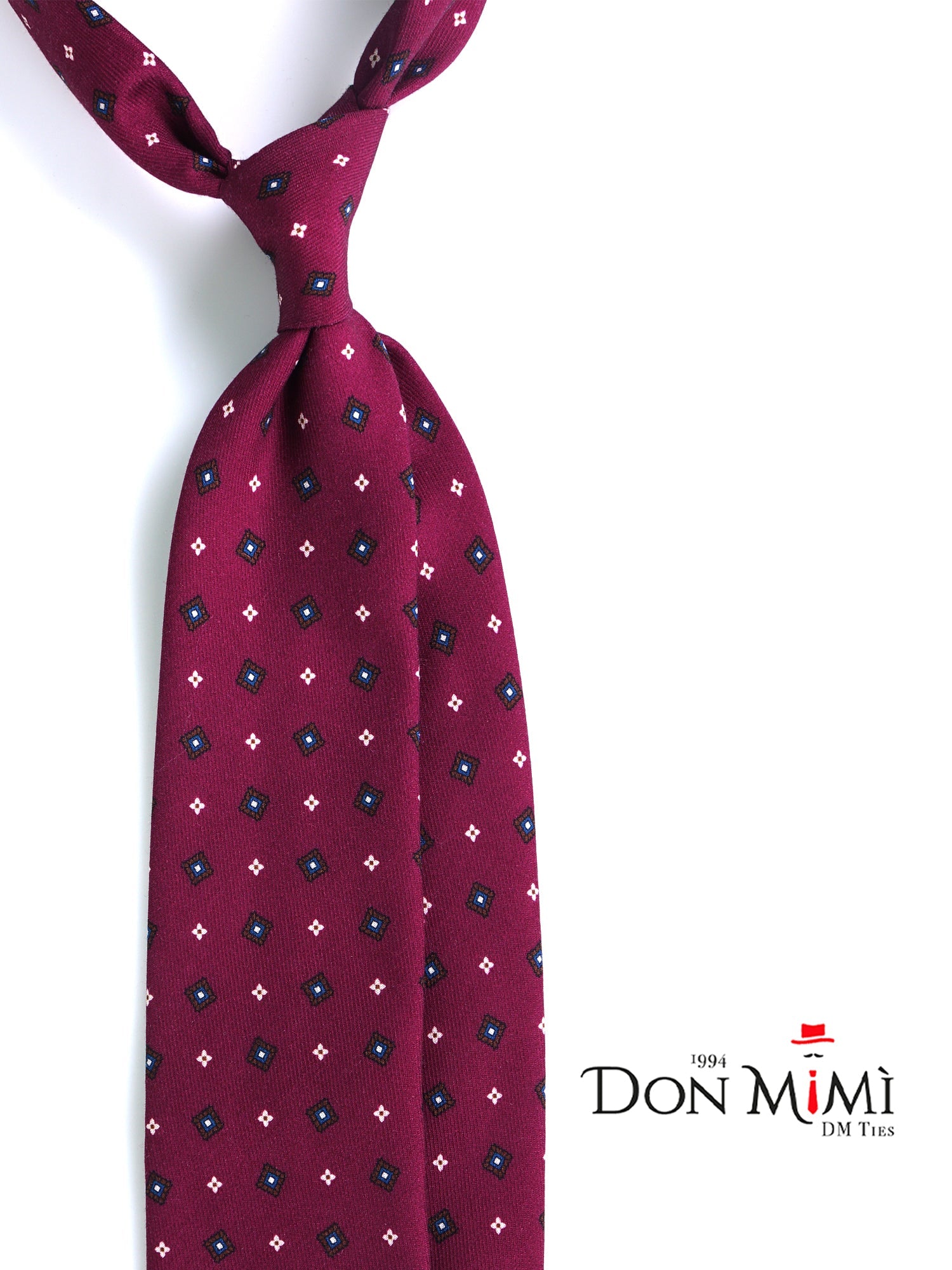 A masterpiece of softness and "Old Money" style. This Don Mimì tie is made from fine English Challis wool, an iconic fabric known for its soft, light feel and impeccable drape. The warm and enveloping chocolate brown base is punctuated by refined blue and white geometric motifs that add light without compromising the overall sobriety. It is the accessory of choice for the professional who knows the value of authentic materials and favors a mature, cultured, and reassuring elegance.