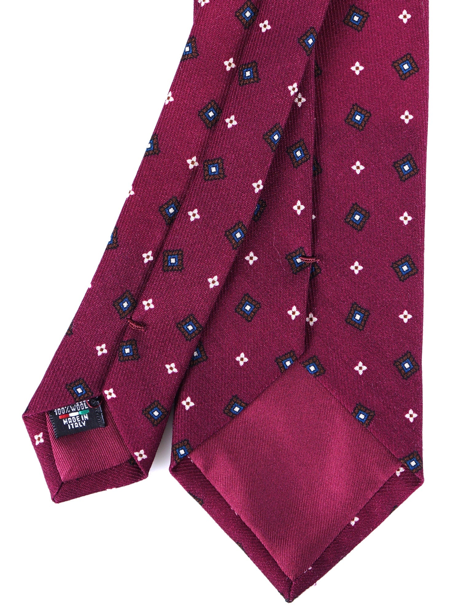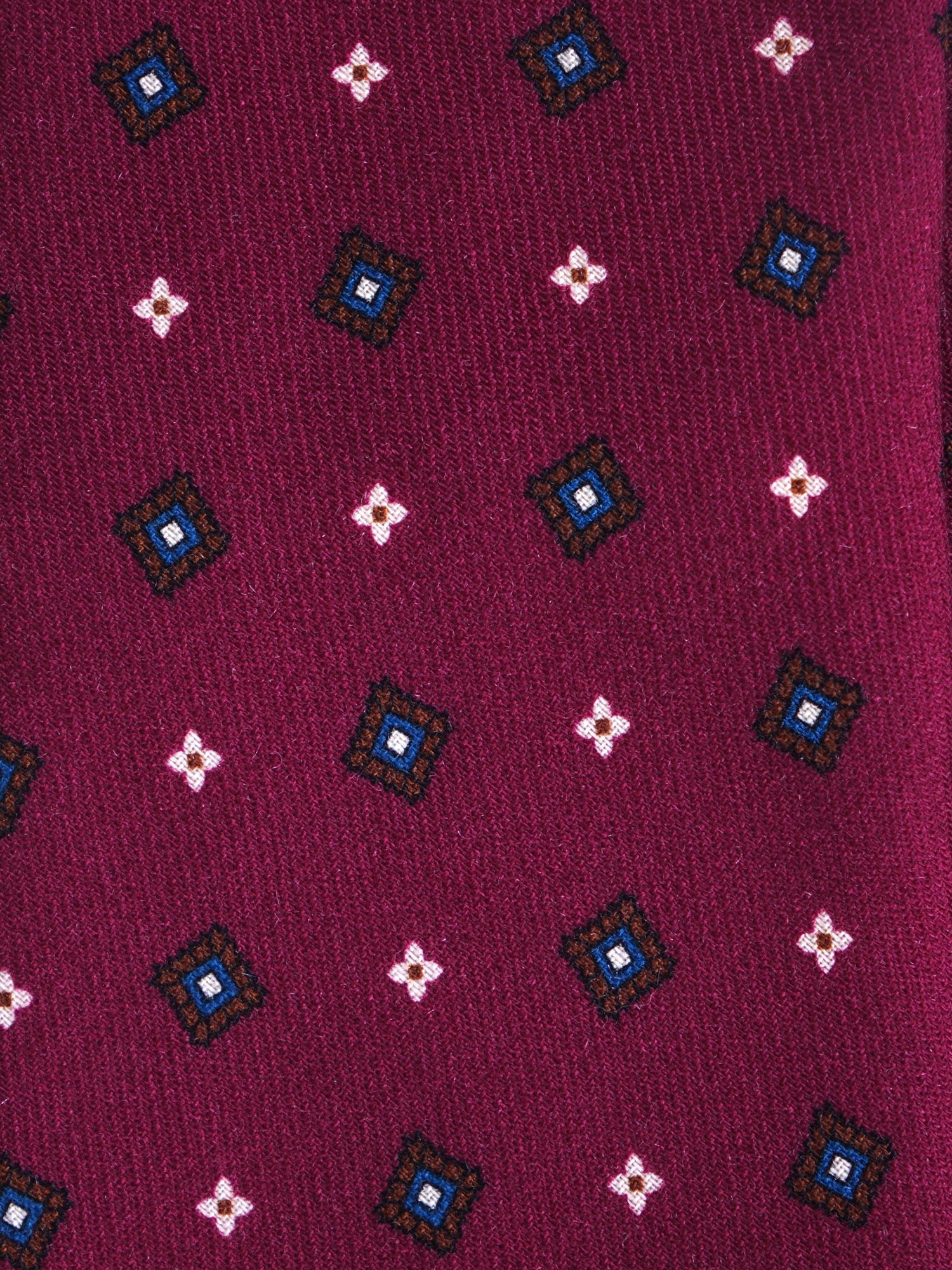 Burgundy 3 Fold FELIX Tie in English Printed Challis Wool
