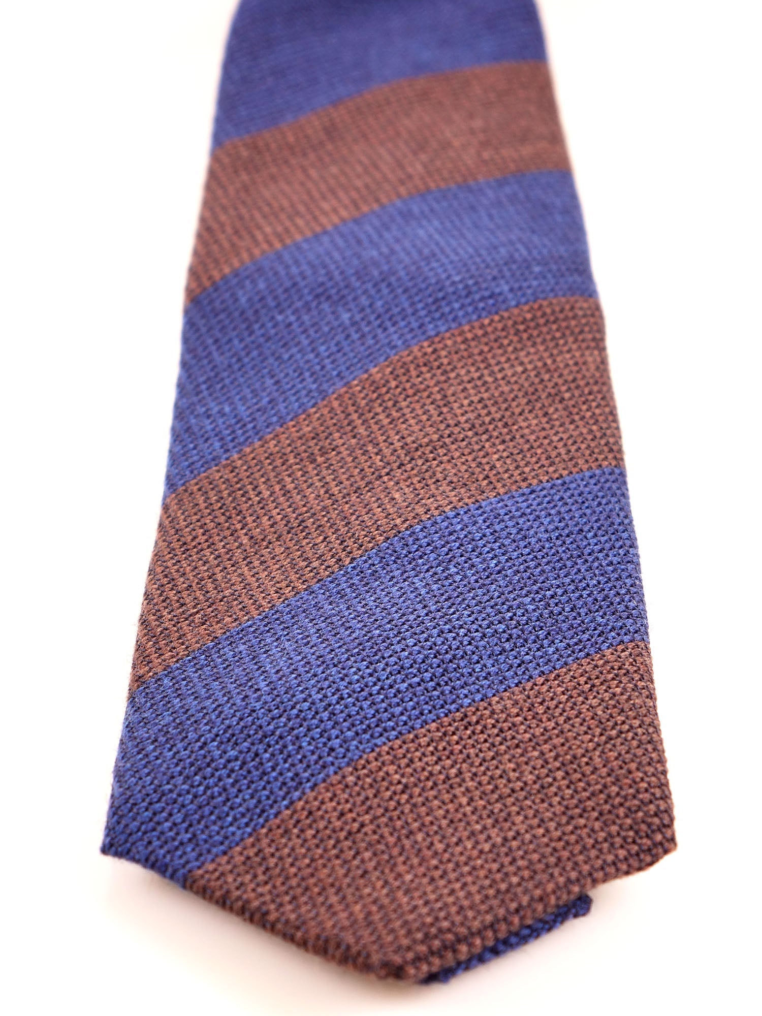 3 Fold Blue/Brown Regimental Tie in Silk/Wool Genadine ISABEL