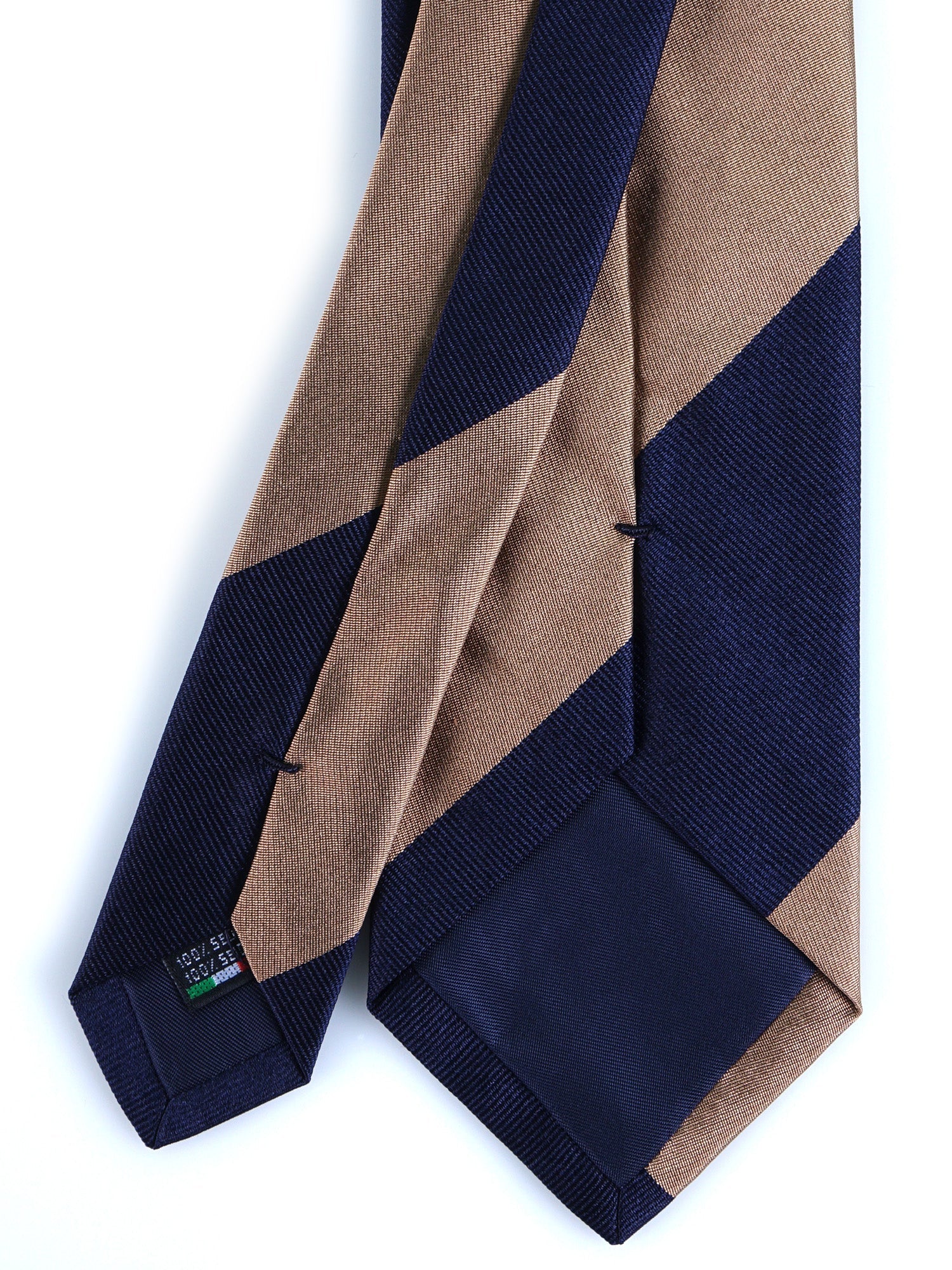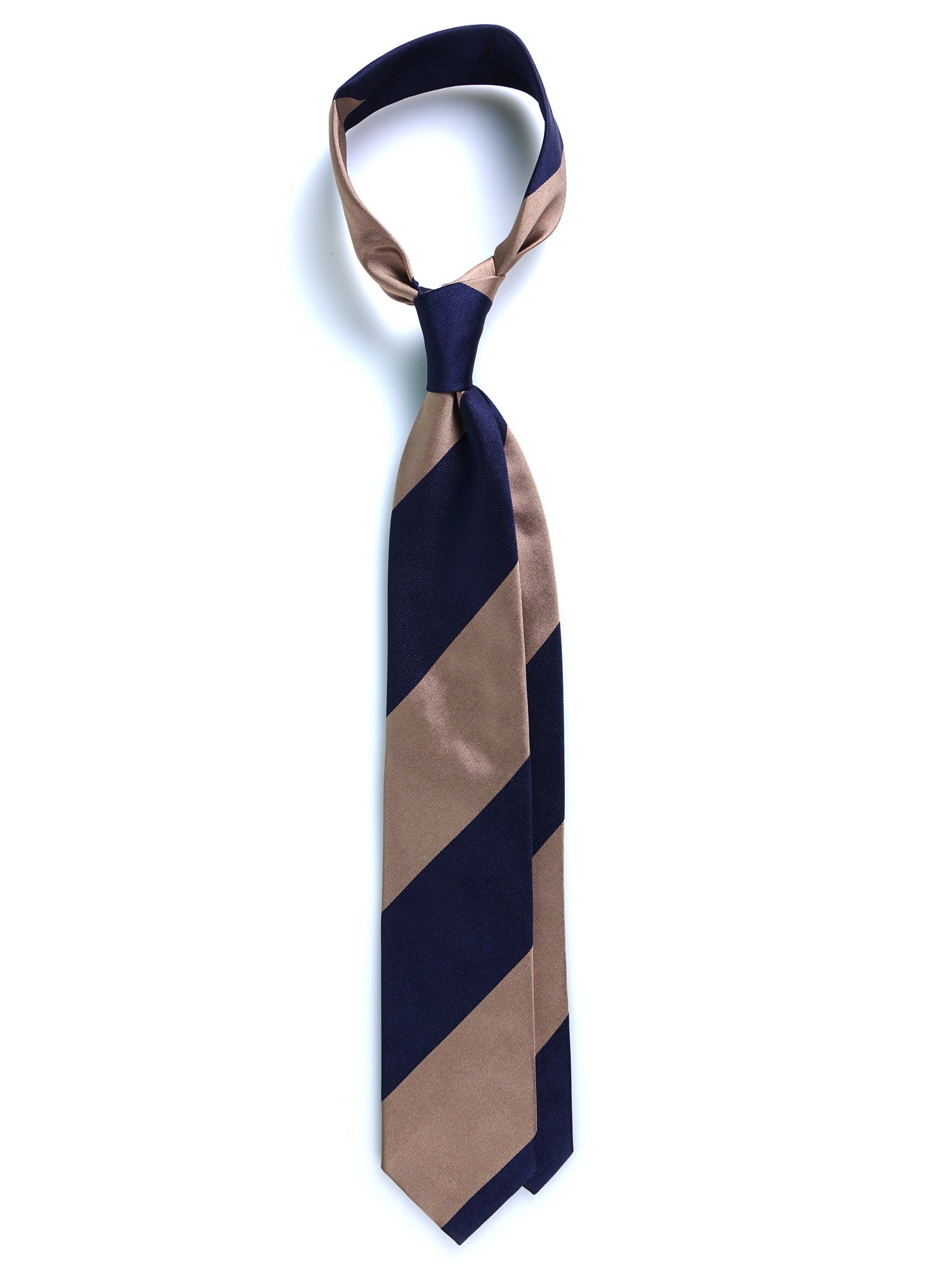 - Contemporary classic: The straight navy blue and beige stripes make this tie understated yet distinctive.