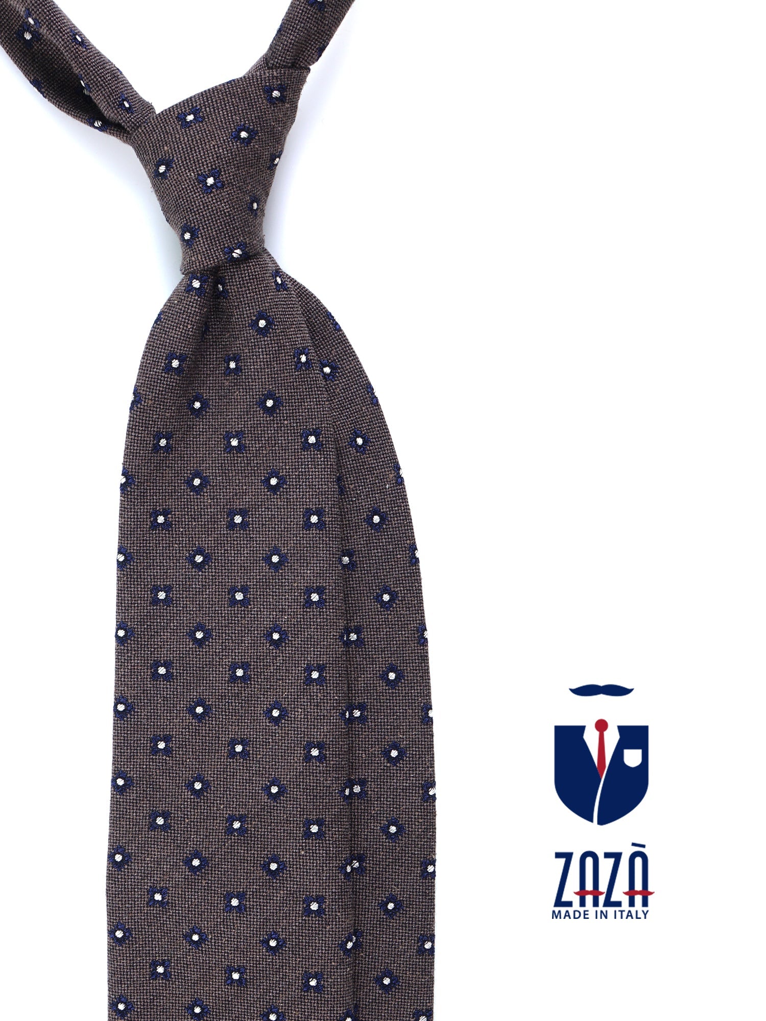 Brown background with blue and white flowers HAND MADE IN ITALY