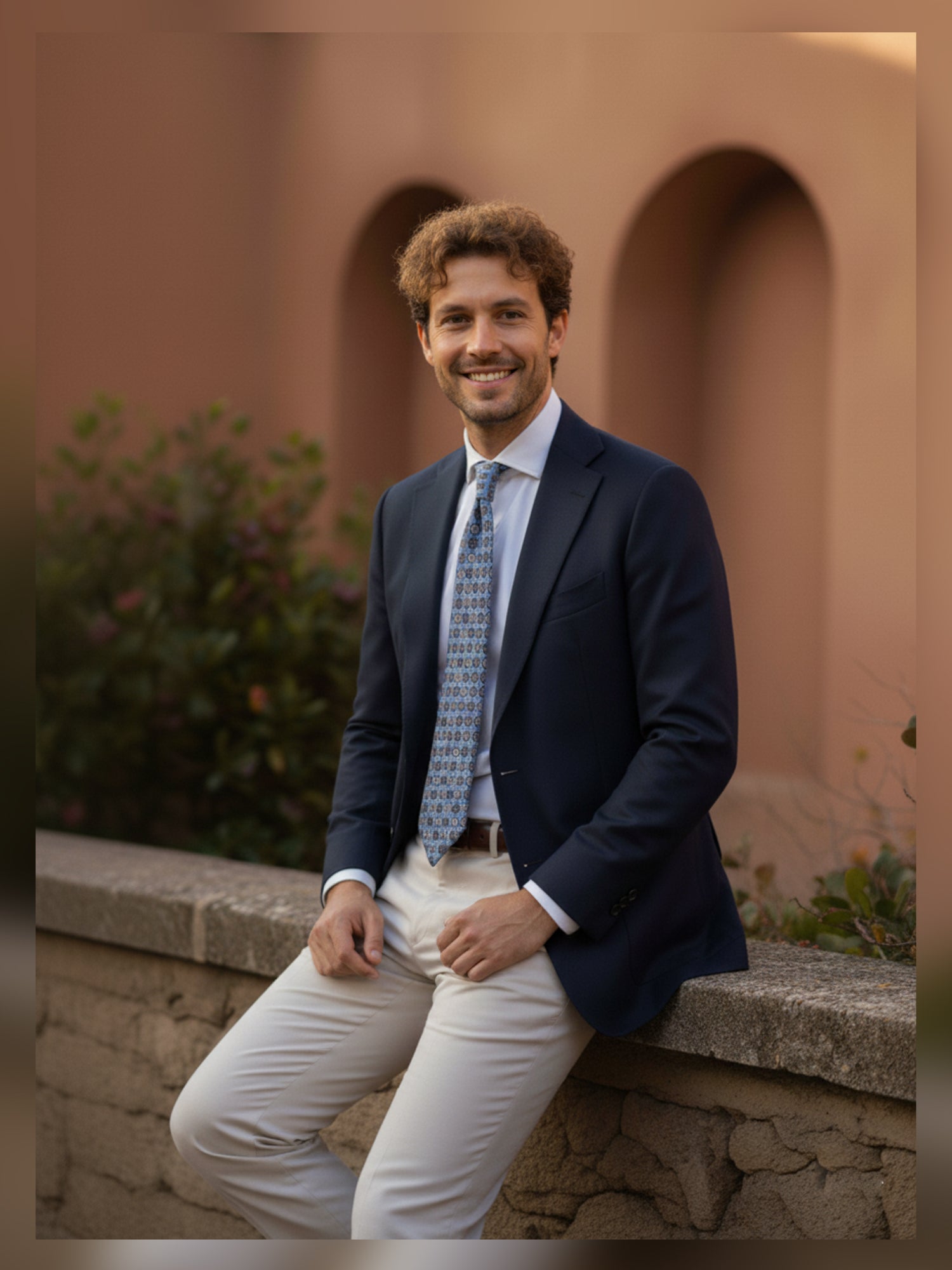 - For the Professional with Refined Elegance (Formal Business Style): Over a grey flannel suit, this tie expresses its maximum potential, becoming the chromatic focal point of the outfit. For a true dandy look, try it with a brown or chocolate suit, creating a harmony of warm and cool tones with great effect.