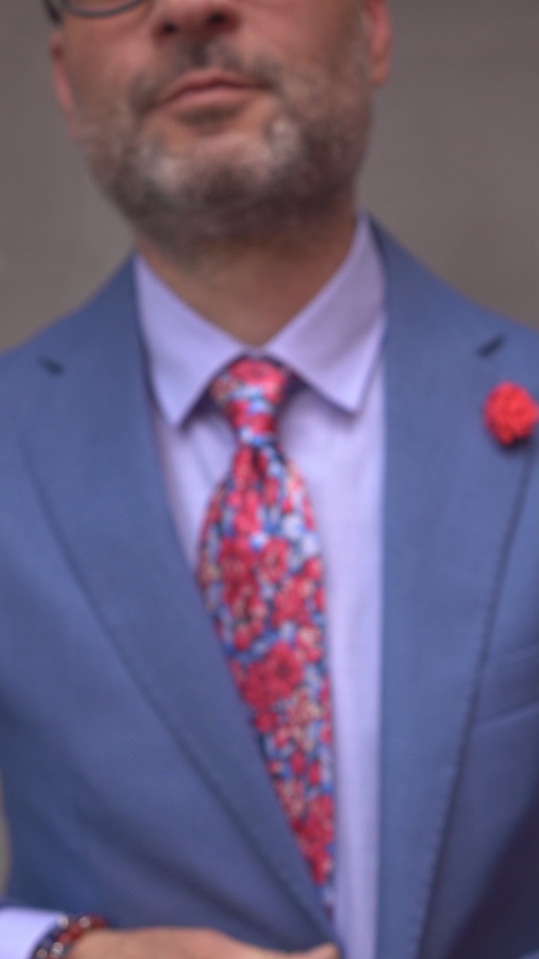 - Occasions: This tie with its large and vibrant floral design is perfect for adding personality to elegant events, such as weddings, formal dinners, or special evenings. Thanks to its intense color, it is also ideal for ceremonies or situations where you want a bold yet sophisticated look.