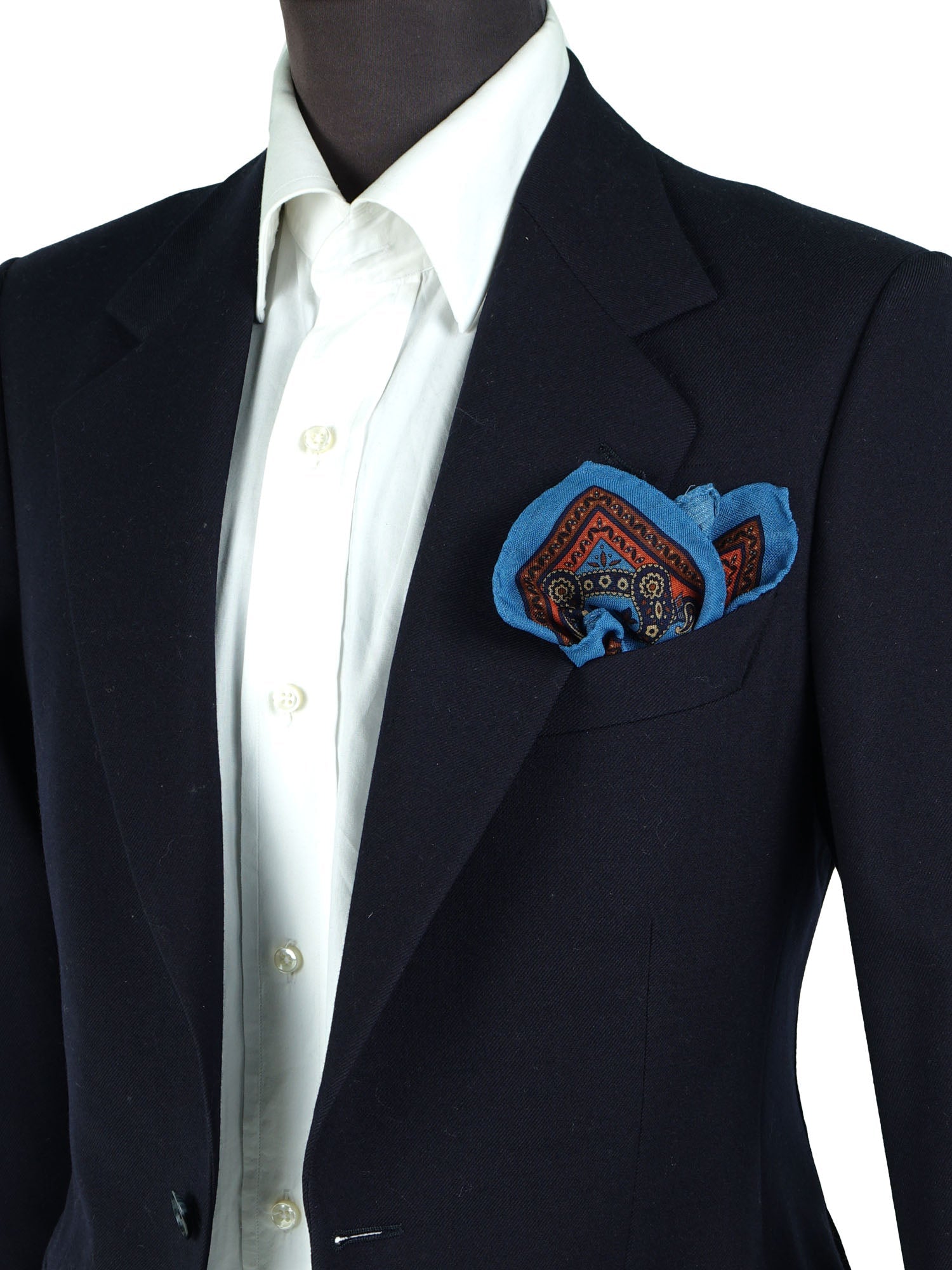 - How to Fold It: A casual and almost informal fold that shows both the orange and blue will marry beautifully with the materiality of the jacket.