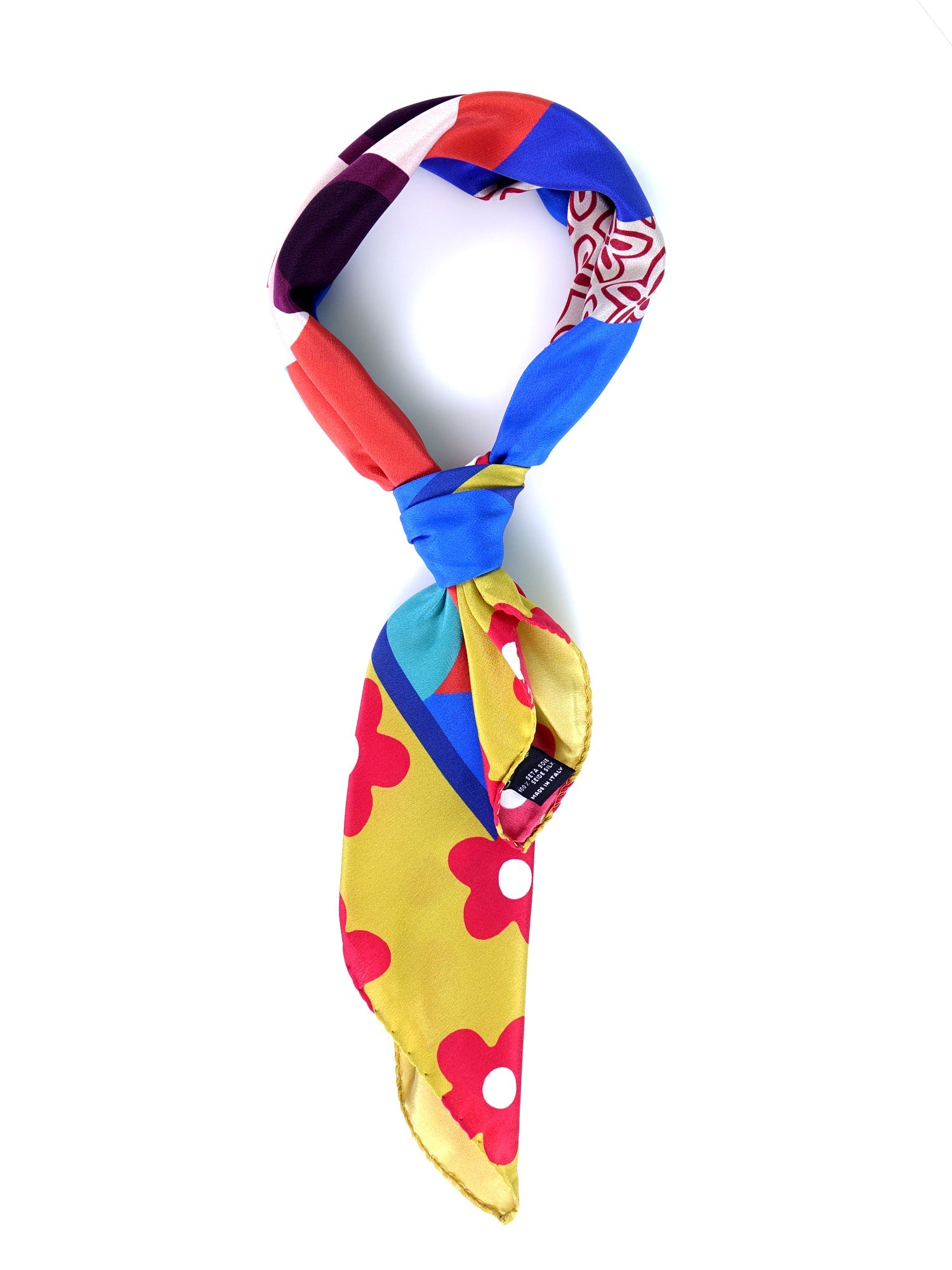 - Around the neck, Artistic style: Knotted with a simple knot to let the ends fall in front, showcasing the central portrait. It's the perfect way to transform a simple black dress or a monochromatic outfit.