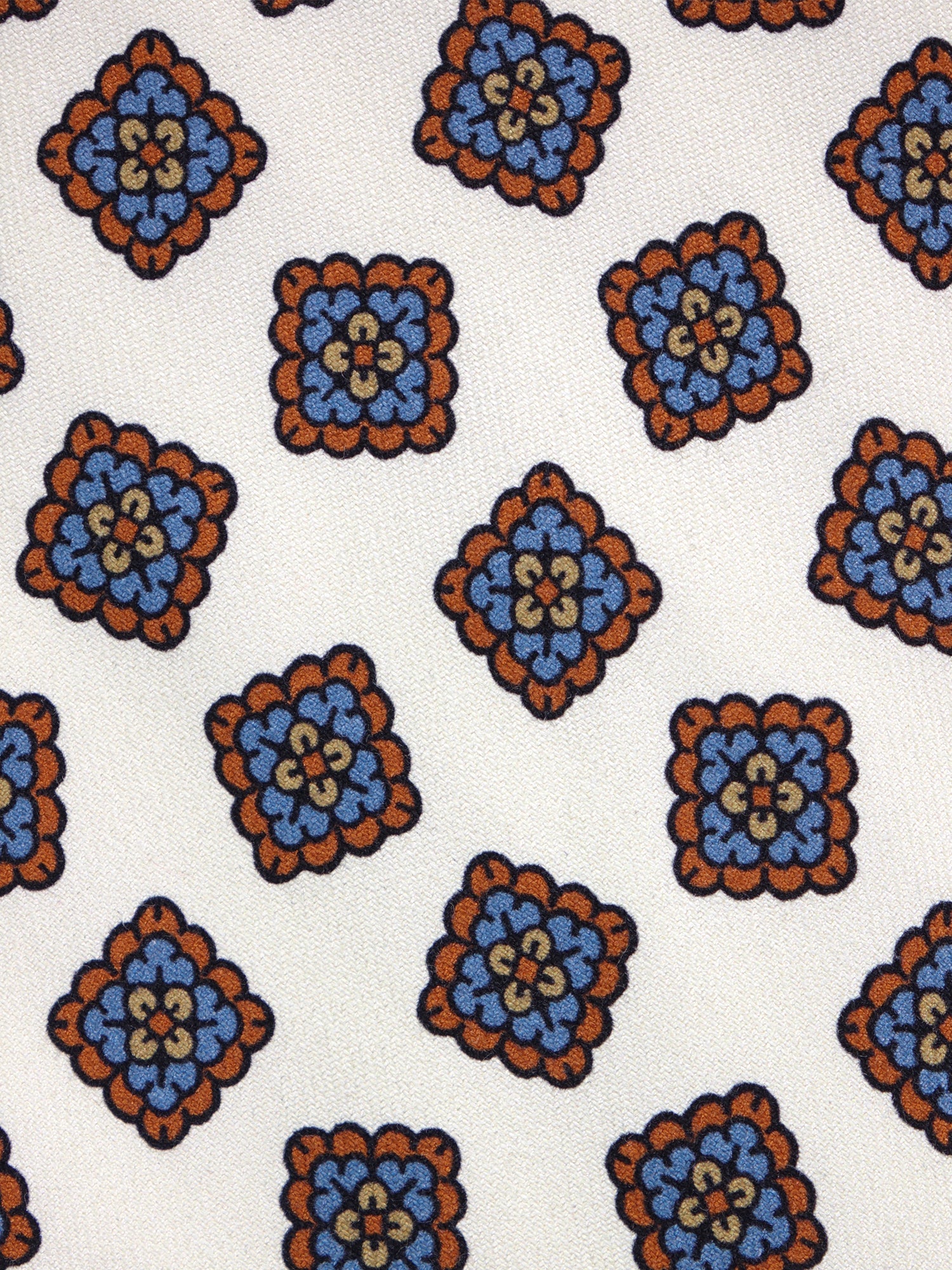 Color: Cream white background with brown and blue geometric pattern