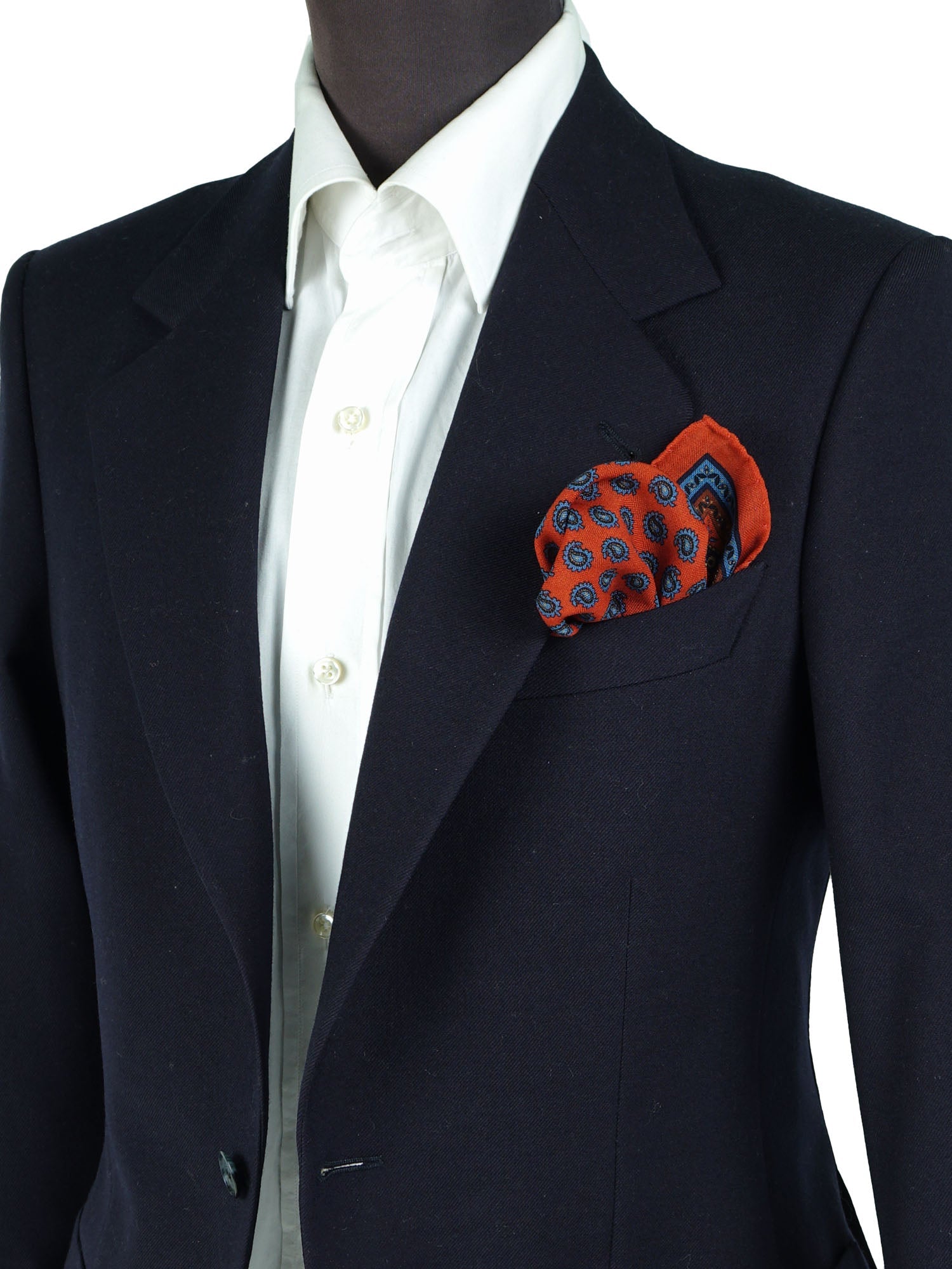 - How to Fold It: A casual and almost relaxed fold, which highlights both the orange and blue, will blend beautifully with the materiality of the jacket.