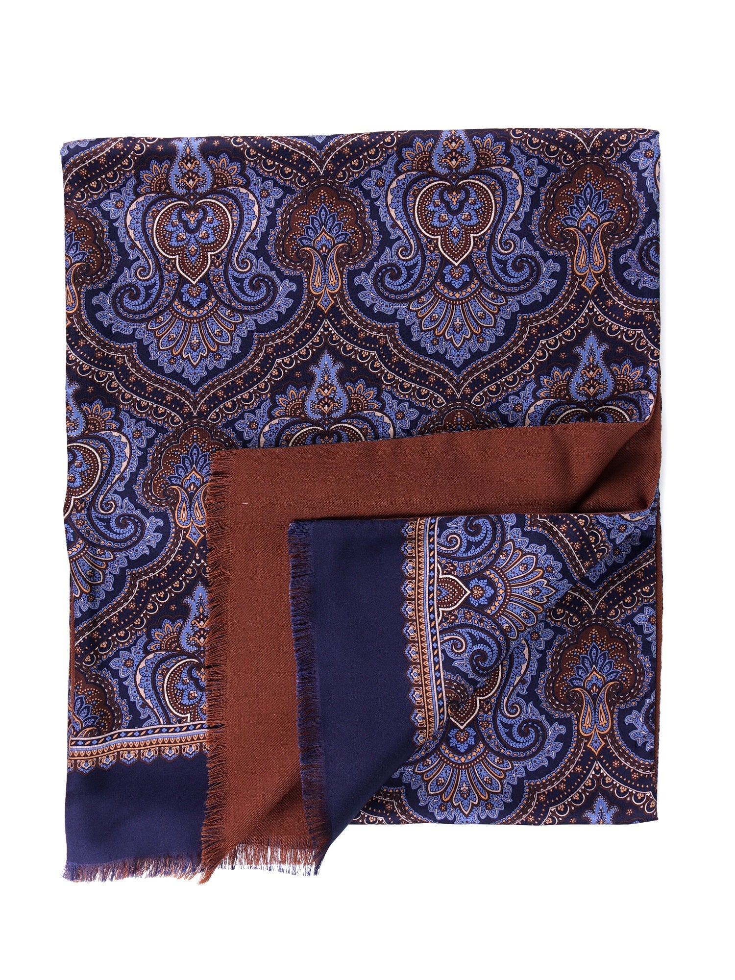 The tailor's advice: The double-faced silk-wool structure allows this scarf to maintain its shape while remaining soft. To enhance both sides (the shine of the printed silk and the opacity of the wool), we recommend wearing it with a simple "loop" knot (Parisian) not too tight, or left loose along the neck under a light overcoat, allowing the paisley motif to be glimpsed during movement.