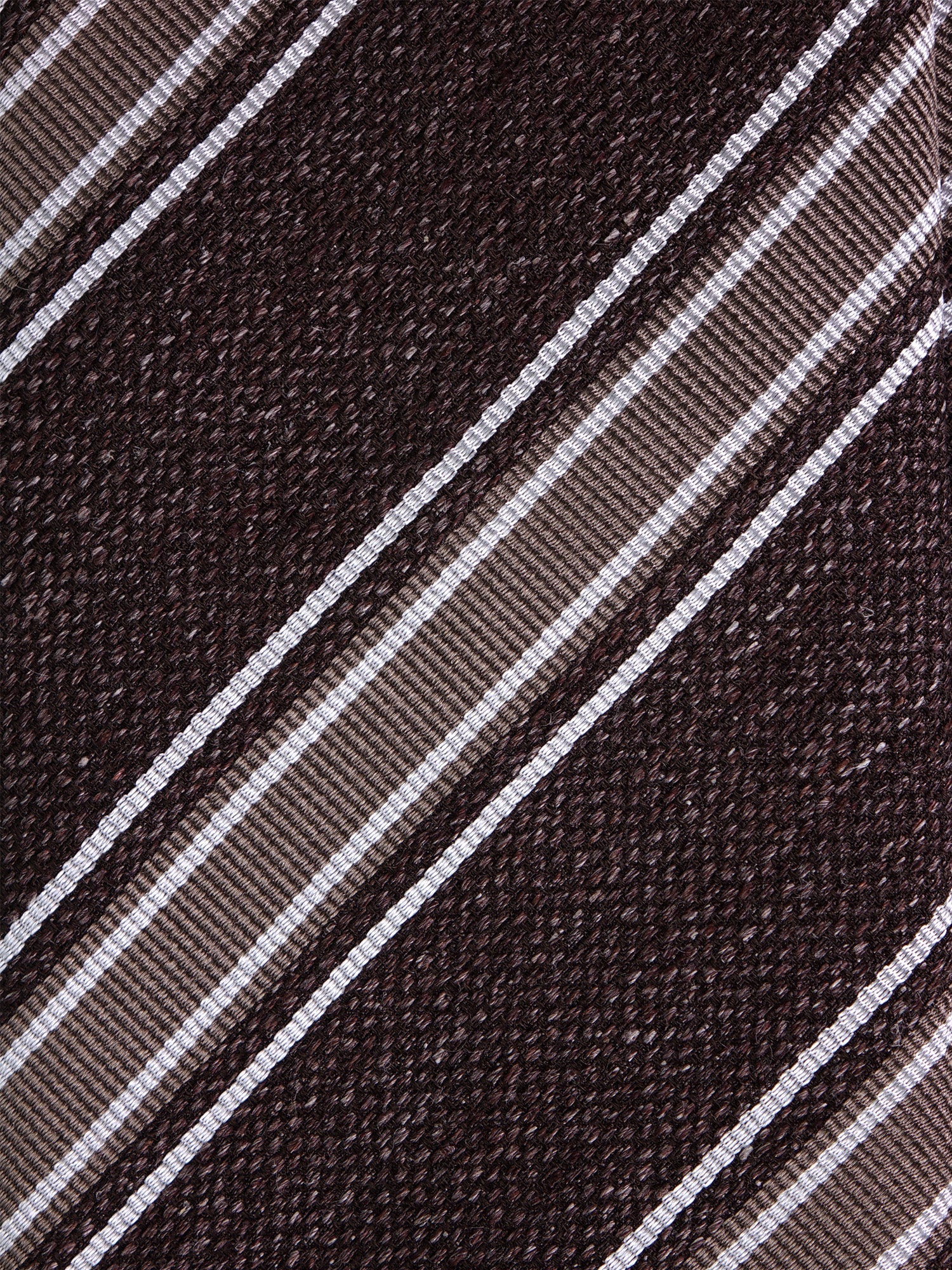 Dynamic, textured, essential. This Zazà silk-linen blend tie is the manifesto of contemporary summer elegance. The irregular texture of linen meets the discreet sheen of silk, creating an accessory with a "Cool & Sophisticated" character. The brown background, broken by white and beige stripes, offers a perfect visual rhythm for the modern man looking for a style detail capable of moving effortlessly from a creative meeting to an aperitif on the terrace.