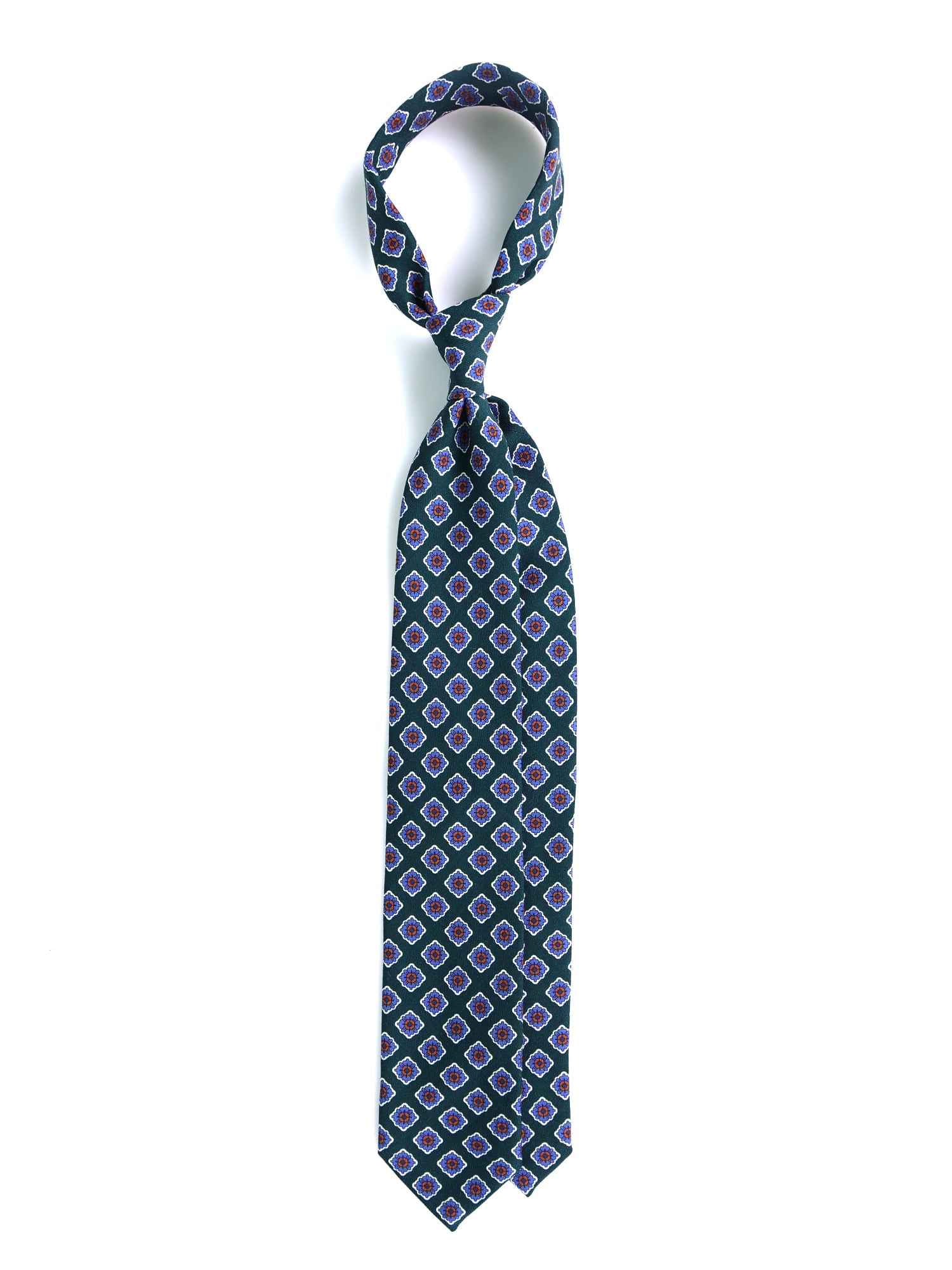 Forest Green 3-Fold GASTONE Tie in Printed English Challis Wool