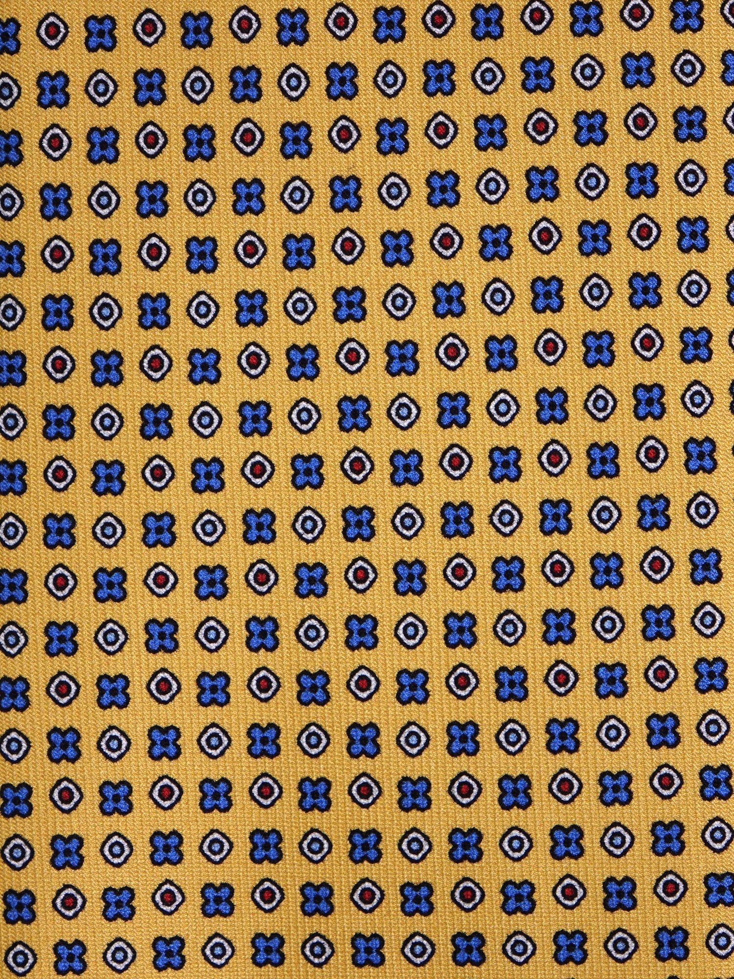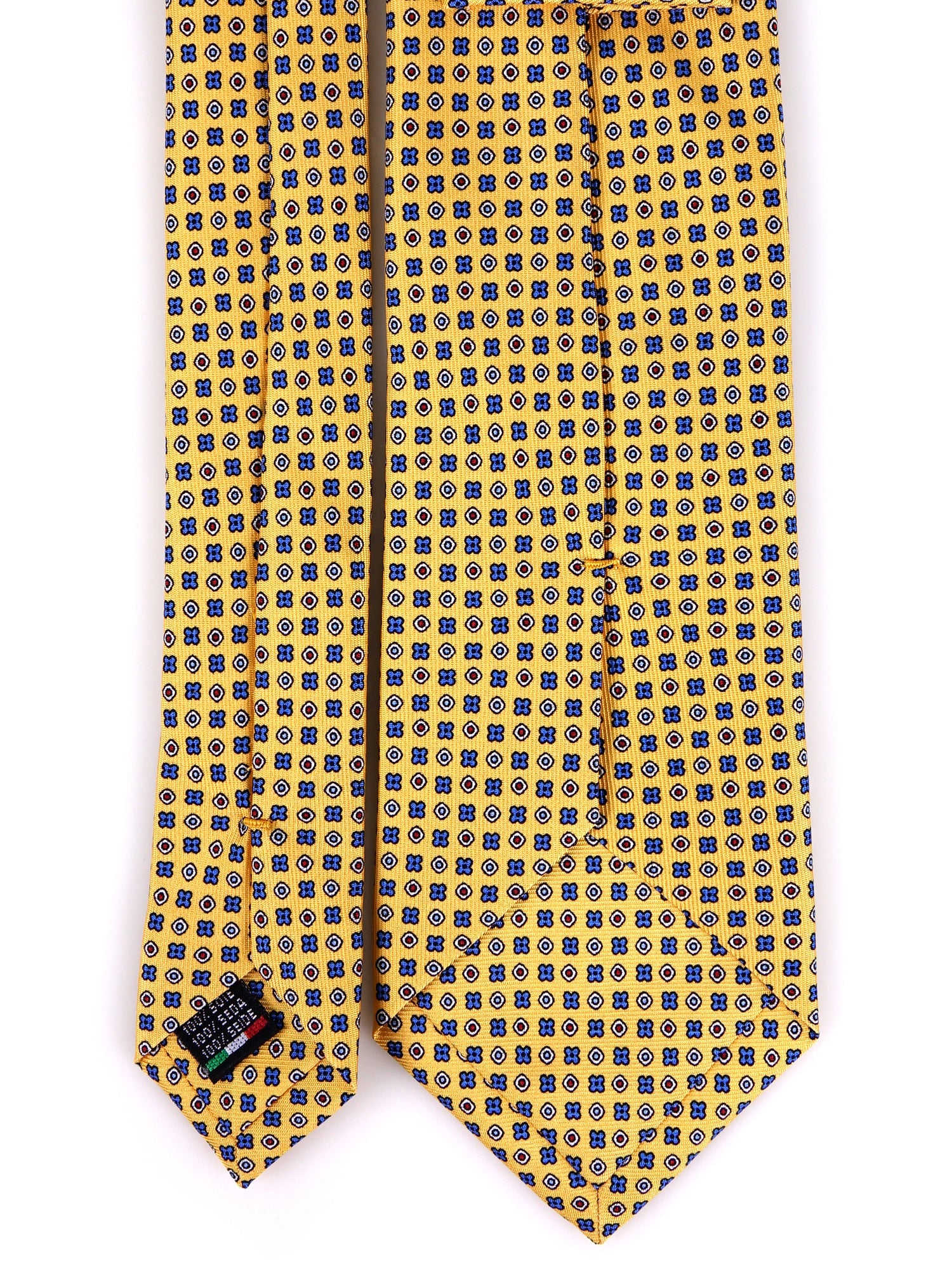 An investment in timeless elegance and status. This Don Mimì 3 folds tie, made of the finest 100% English printed silk, represents the absolute excellence of the tailoring tradition. The bright yellow background, finely decorated with a rigorous blue and red geometric pattern, gives a touch of class and authority to the wardrobe of the successful professional. The fluid, light, and breathable hand of the silk guarantees an impeccable knot, perfect for dominating the spring and summer season with prestige and formal perfection.