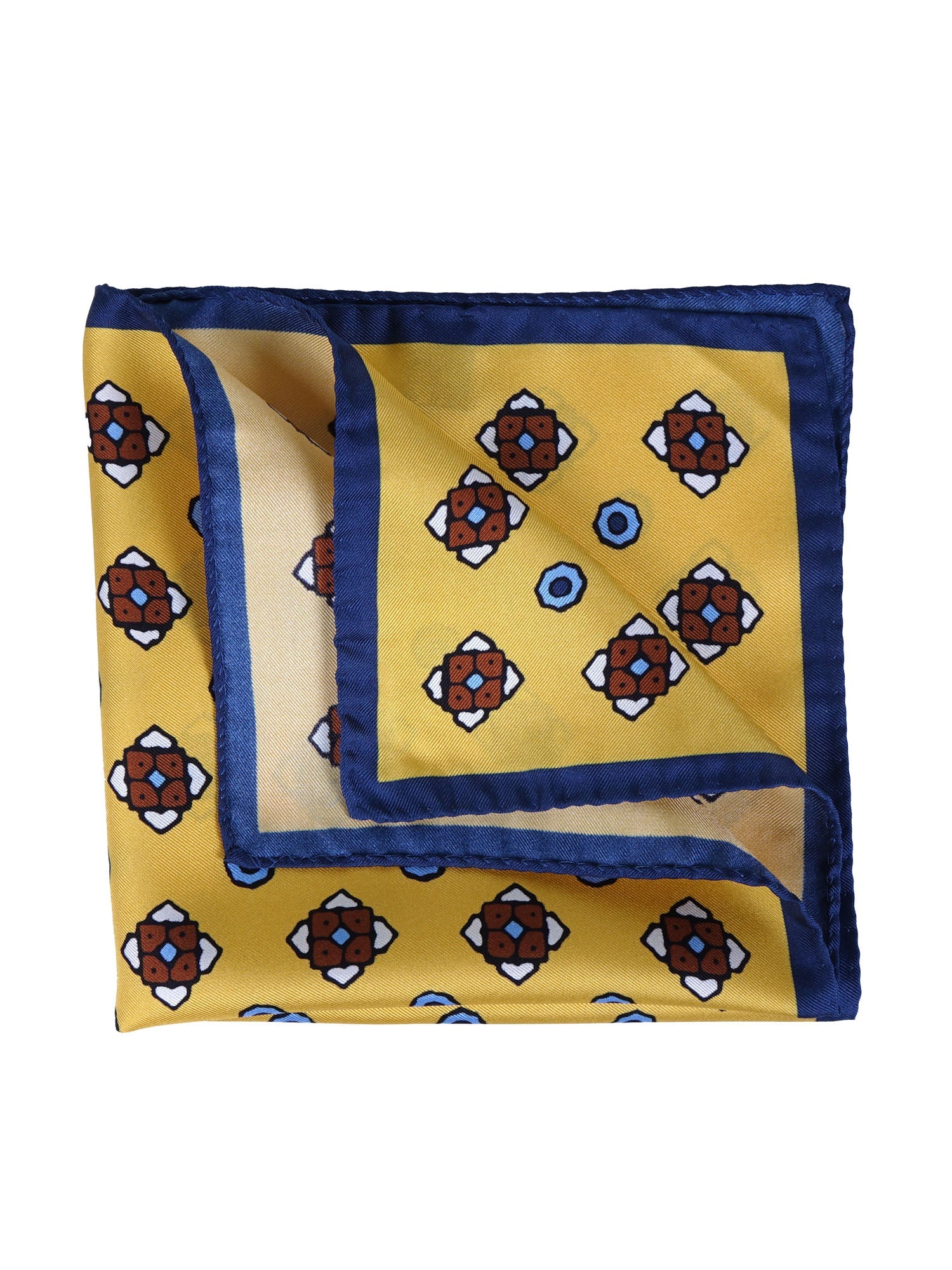 Yellow Pocket Square in Pure Printed Silk ALMA